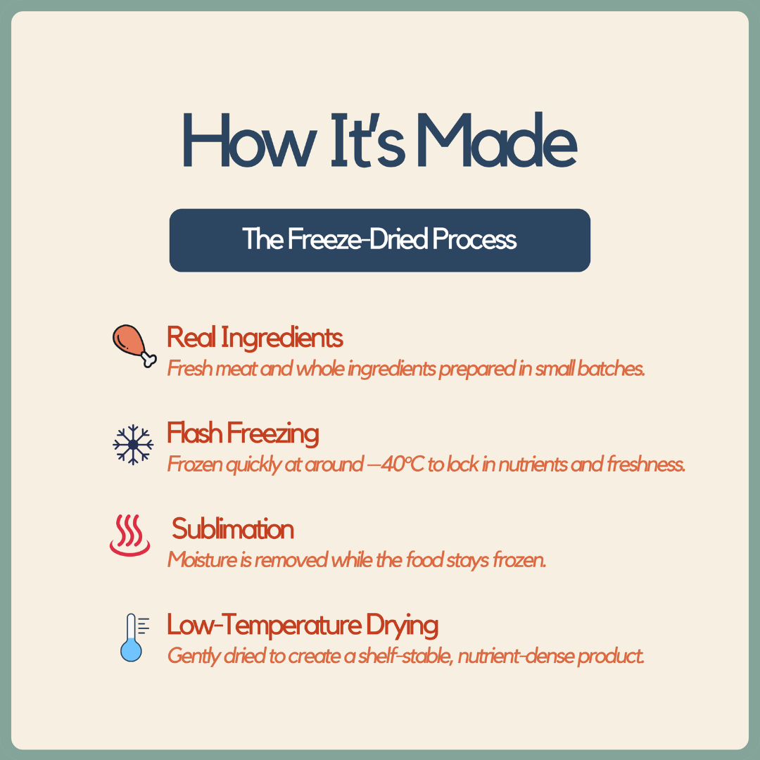 Our Freeze-Dried Kibbles deliver premium animal protein, carefully freeze-dried to preserve nutrients, aroma, and flavor.