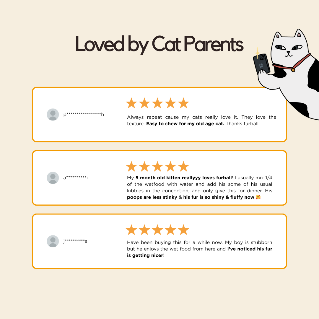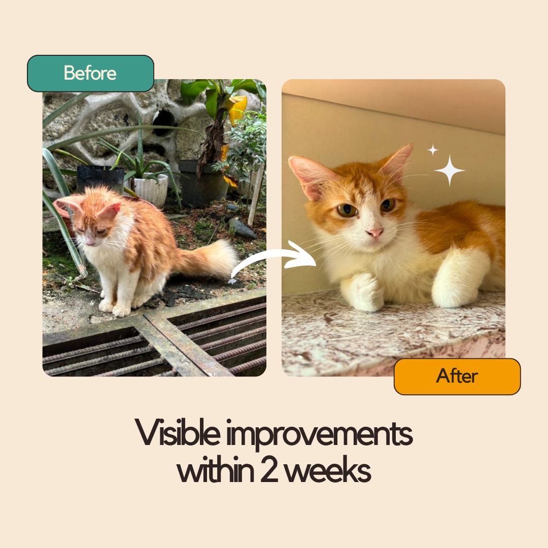 Most adult cats do well with one pouch per meal, 1–2 times a day. Adjust based on your cat's size, age, and activity level. If you're transitioning from another food, mix gradually over 5–7 days.